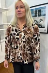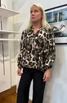 Mönstrad blus från Caramelle i viskos med avslappnad passform. Blusen har en rundad halsringning och knapprad framtill, vilket ger en elegant touch. Lång ärm med resår i avslutet för extra komfort. Passar utmärkt till både vardags och festliga tillfällen, och kan bäras med både kjol och byxor.