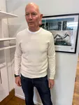 Stickad tröja från Murrey i mjuk bomull med rund hals och ribbade kanter. Tröjans klassiska design och bekväma passform gör den till ett självklart val för både vardag och arbete. Bär den ensam eller under en kavaj för extra värme. Ett tidlöst plagg för en stilren garderob.
