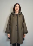 Vacker och tidlös kappa från Hettemarks. Kappan är gjord i en ull och kashmir blandning. Den har genomgående kanppstängning fram och två blixtlåsförsedda fickor i midjan och en inneficka. Kappan har en avtagbar huva.
