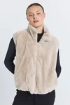 Väst från FREEQUENT i mjuk fuskpäls, tillverkad av polyester. Den har en klassisk ståkrage och diskreta knappar framtill. Passformen är bekväm och lättburen, idealisk för lager på lager under kyliga dagar. Perfekt att bära över en långärmad tröja för extra värme och stil.