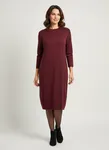 Långärmad klänning från CAPPUCCINI B är tillverkad av mjuk viskos som ger en behaglig känsla mot huden. Den har en rak passform vilket gör den lämplig för både vardag och arbete. Klänningen har en rund halsringning och diskreta detaljer som förstärker dess tidlösa uttryck.