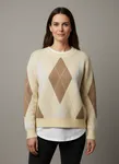 Den stickade argylemönstrade tröjan från Caramelle är tillverkad av mjuk ull och akryl, vilket ger både värme och komfort. Tröjans klassiska mönster och raka passform gör den till ett utmärkt val för vardagsbruk eller avslappnade tillfällen. Rund halsringning och ribbade muddar ger en stilren avslutning. Perfekt för kyligare dagar.