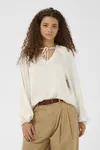 Blus Pakwa från Saint Tropez är tillverkad i polyester, vilket ger en lätt och följsam känsla. Modellen har en avslappnad passform med långa ärmar och en dekorativ knytning vid halsringningen. Denna blus passar utmärkt både till vardags och vid mer uppklädda tillfällen.