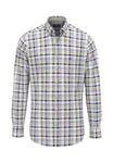 Denna skjorta imponerar med sitt klassiska rutmönster och tidlösa, mångsidiga utseende. Den rena bomullen garanterar en bekväm känsla och utmärkt andningsförmåga för vardagsbruk. Button-down-kragen ger skjortan en elegant men avslappnad touch och understryker designens traditionella karaktär. Den genomgående knappslåen och den subtila broderiet på bröstet kompletterar harmoniskt helhetsintrycket. Oavsett om den kombineras med chinos, jeans eller bärs under en kavaj, kompletterar denna skjorta både en elegant fritids- och business-casual-look.