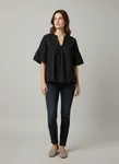 Mingel More Blouse från More by Mingel är tillverkad i mjuk bomull för en bekväm känsla. Blusen har en lös passform med trekvartsärmar och diskreta broderidetaljer. Den rundade halsringningen med liten v-ringning ger en stilren touch. Passar utmärkt till både vardags och festliga tillfällen.