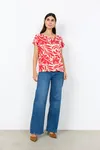 SC-MARICA AOP 357 är en T-shirt tillverkad av 93% Lyocell och 7% Elastan. Den har en rund halsringning, korta ärmar och en längre fåll baktill med ett djärvt bladtryck. Kombinera den med jeansshorts eller en kjol för en avslappnad och cool look.