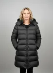 Stilren och värmande långjacka från Saki Sweden. Jackan är vadderad för extra värme under kalla dagar och har en praktisk avtagbar huva för anpassning efter väder. Två framfickor med dragkedja samt en innerfick. Perfekt för dig som söker både funktion och elegans i vintergarderoben.